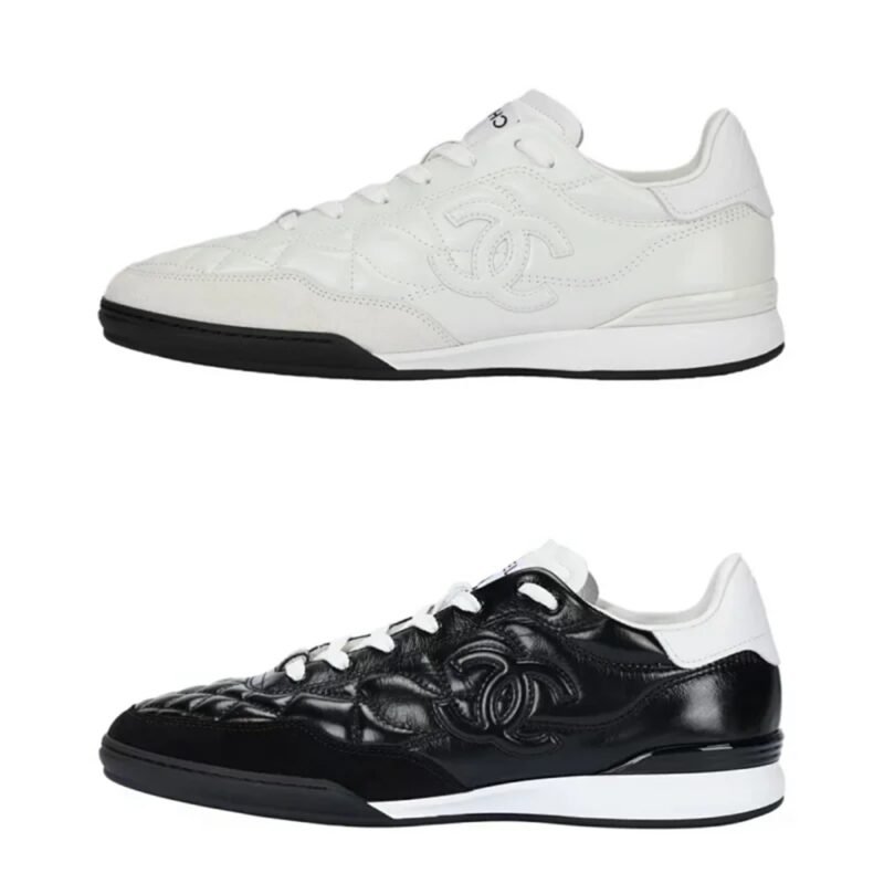 Cnfans CHANEL Calfskin Suede Quilted Womens Logo Sneakers